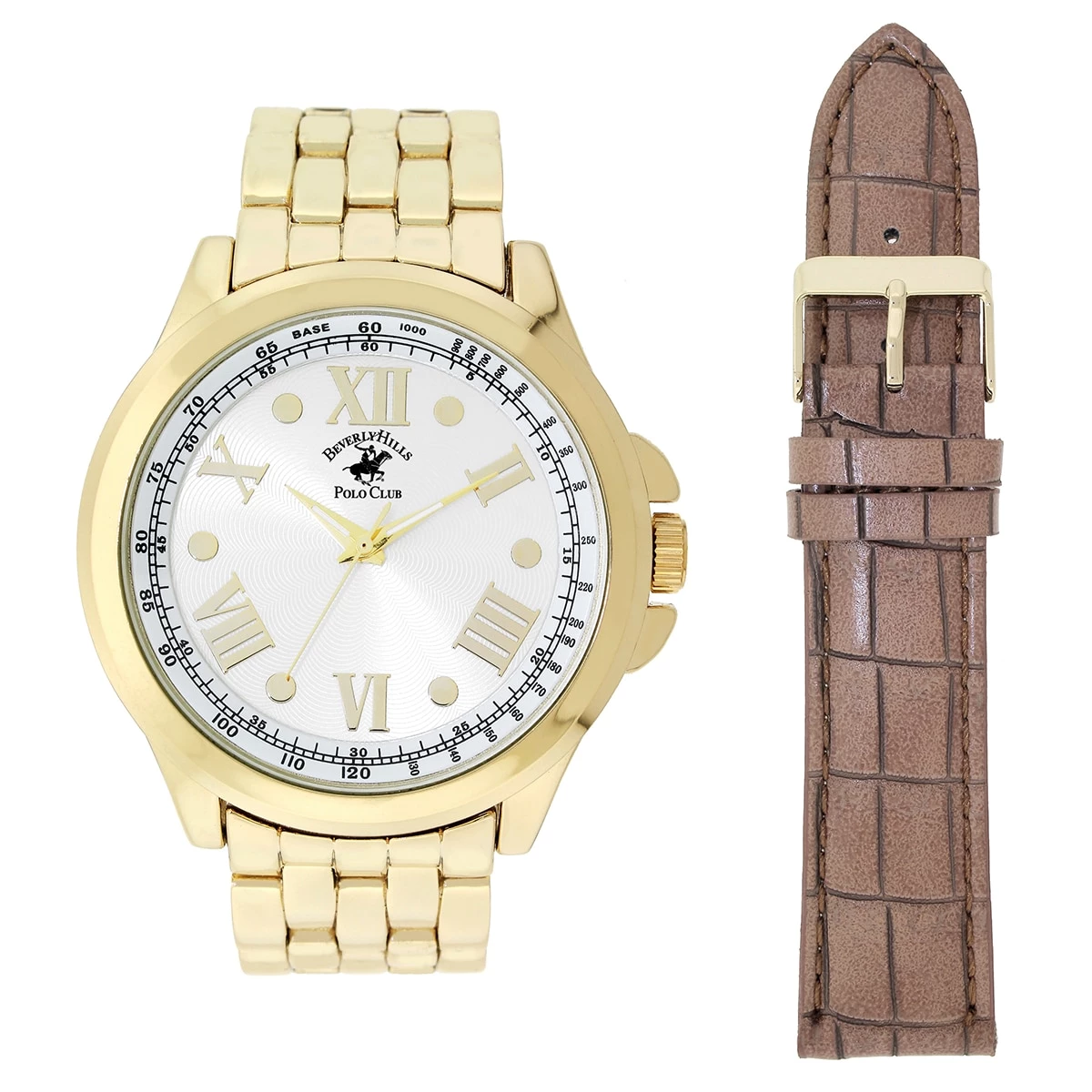 Hot Sale ๐Ÿ‘ Beverly-Hills-Polo-Club Mens Beverly Hills Polo Club 45mm Gold-Tone โŒš Watch Set – 53771 โŒ›