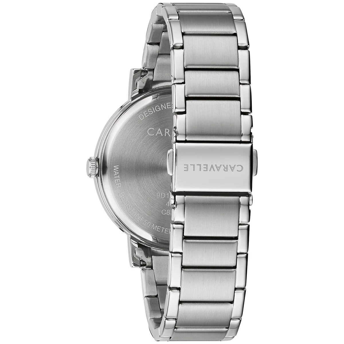 The Mens Caravelle by Bulova green dial bracelet watch offers a retro style with a modern edge. This watch features a domed mineral crystal lens and the deep green dial adds extra flair. This watch is water-resistant up to 50 meters.