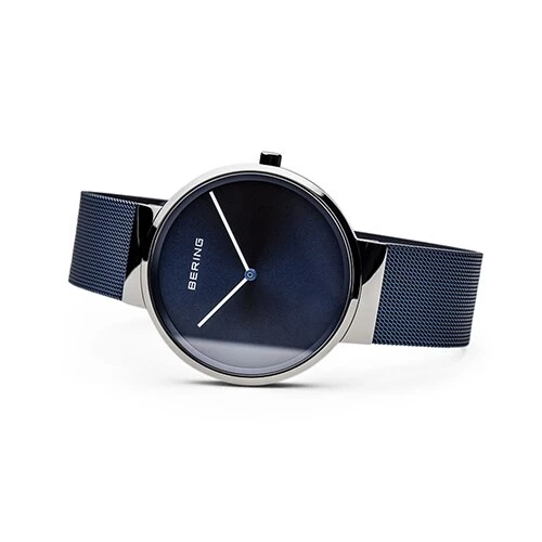 This BERING blue stainless steel bracelet watch is classic, puristic, and yet exciting. Perfect style combined with contemporary minimalism. Inspired by Danish design, the CLASSIC COLLECTION represents a unique timepiece, perfectly highlighting your daily style.The polished silver colored stainless steel case, made of pure, high quality, medical-grade stainless steel (316L), in combination with the modern blue colored Milanese strap, provides the classic BERING look. The fine workmanship of the Milanese strap gives the watch a refined, almost noble touch. A minimalist Sunray dial that matches the band, protected by crystal clear, scratch-resistant sapphire crystal, perfectly completes the modern look.