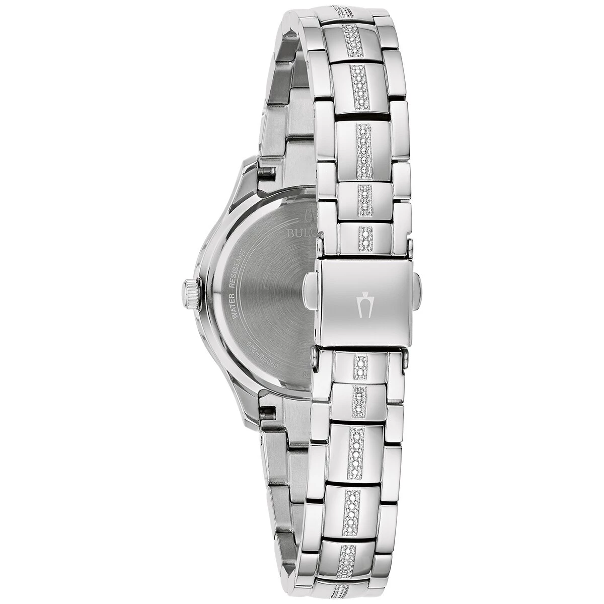 This Womens Bulova stainless crystal accent bracelet watch has a stainless steel case, bracelet, and a lustrous white mother-of-pearl dial embellished with 174 brilliant crystals. The watch also features a three-hand sub sweep quartz movement, flat mineral crystal, and water resistance to 30 meters.Limited Manufacturer’s Warranty.
